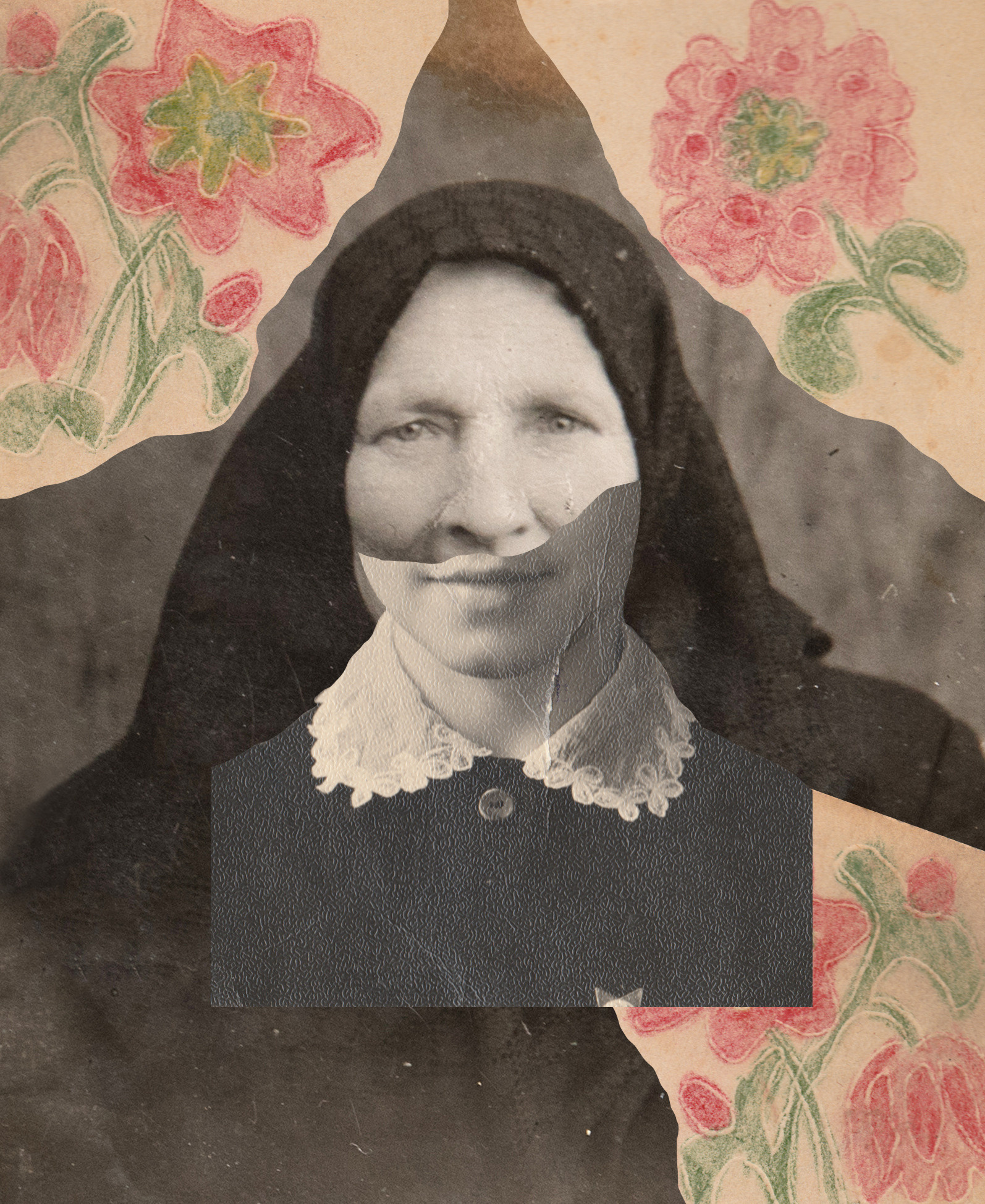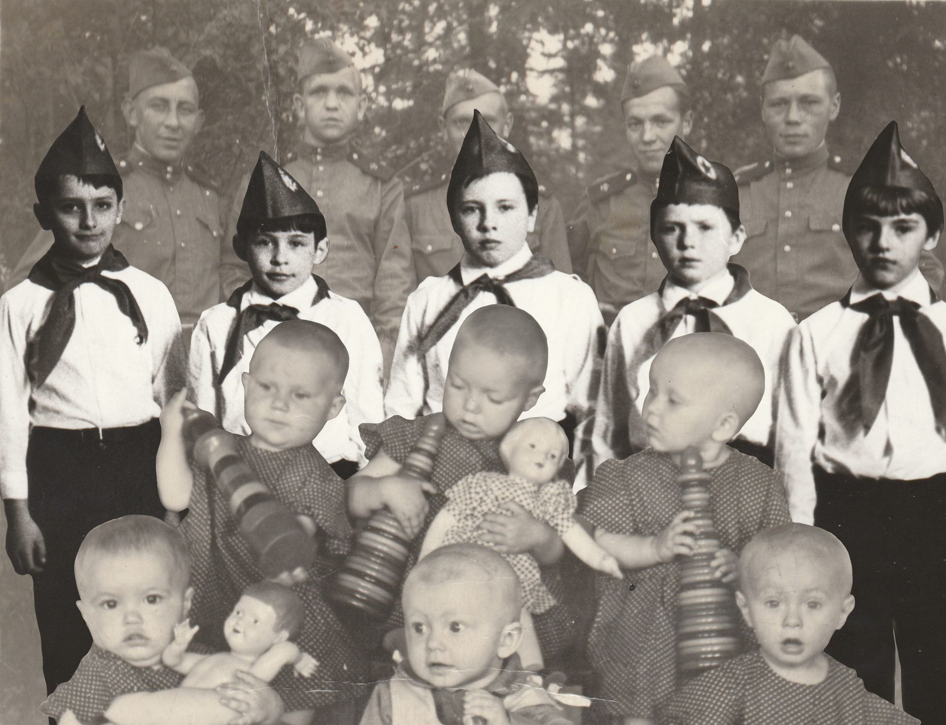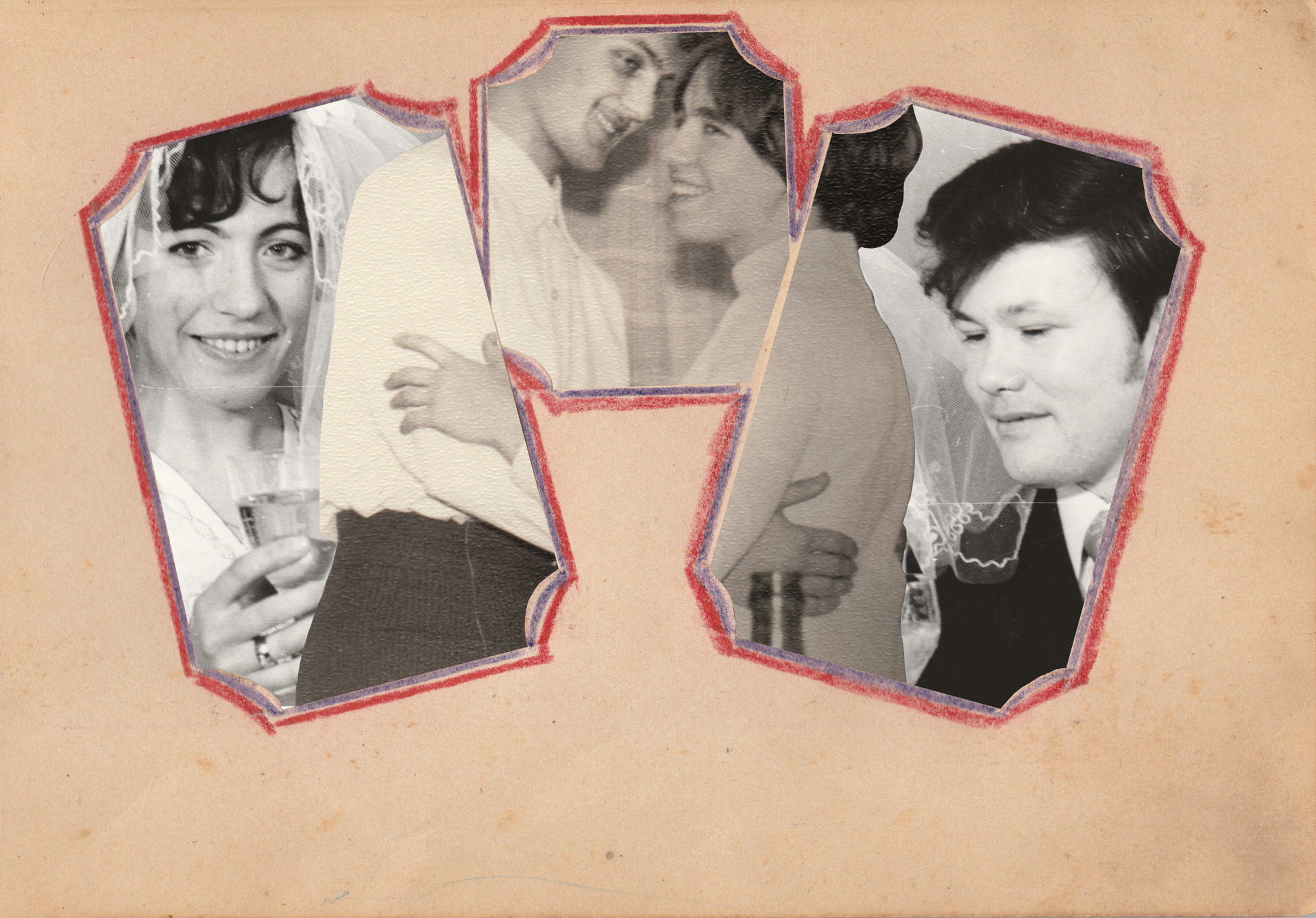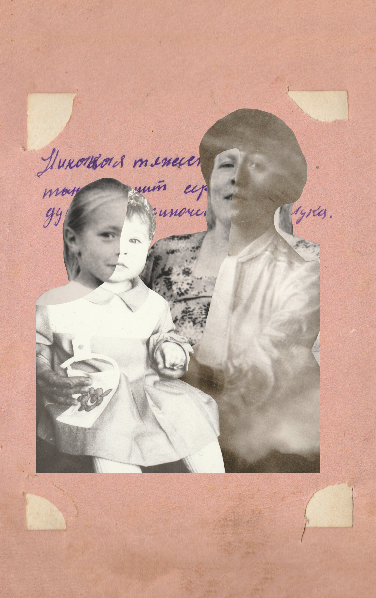 The iconographic essence of such images as mothers and children, fathers and partners, wedding and burial rituals always remains the same. These unchanging images disguise personal traumas that shatter the conventionality of the archetypical. Behind semi-transparent layers of photos there is a visual code of generational practices and mythology that refer to the primordial familial archetype of the Father God, Son, and the Mother of God. A deliberate desire to “decorate” and sacralize the fragile reality manifests in the naive ornamental frameworks of village handmade icon cases, evidently based on the Ark of the Covenant with its table of commandments.